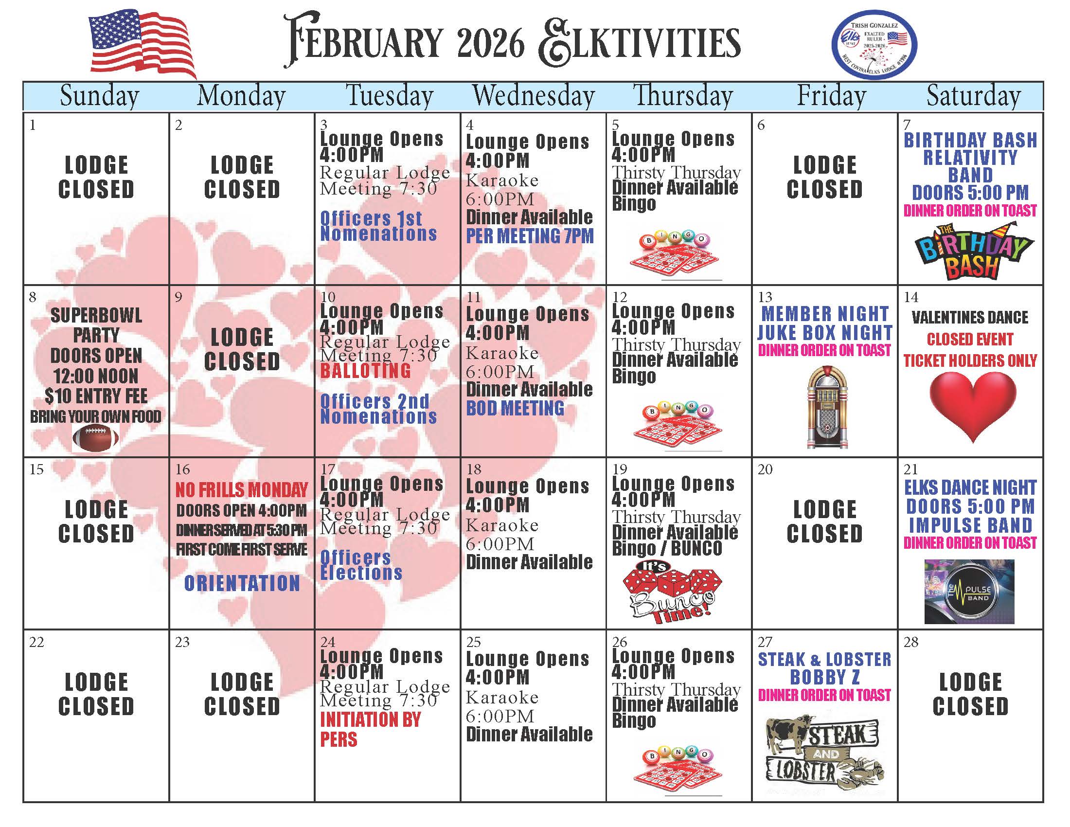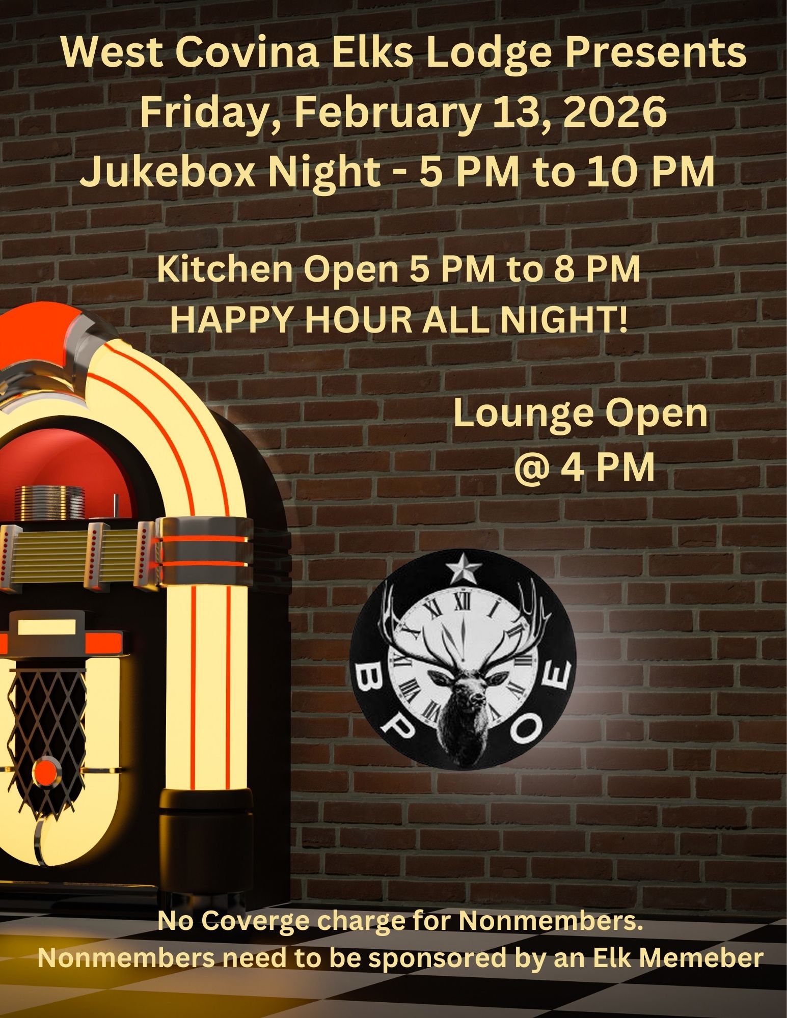 West Covina Elks Members & Associate Members $25 Visiting Elks $30