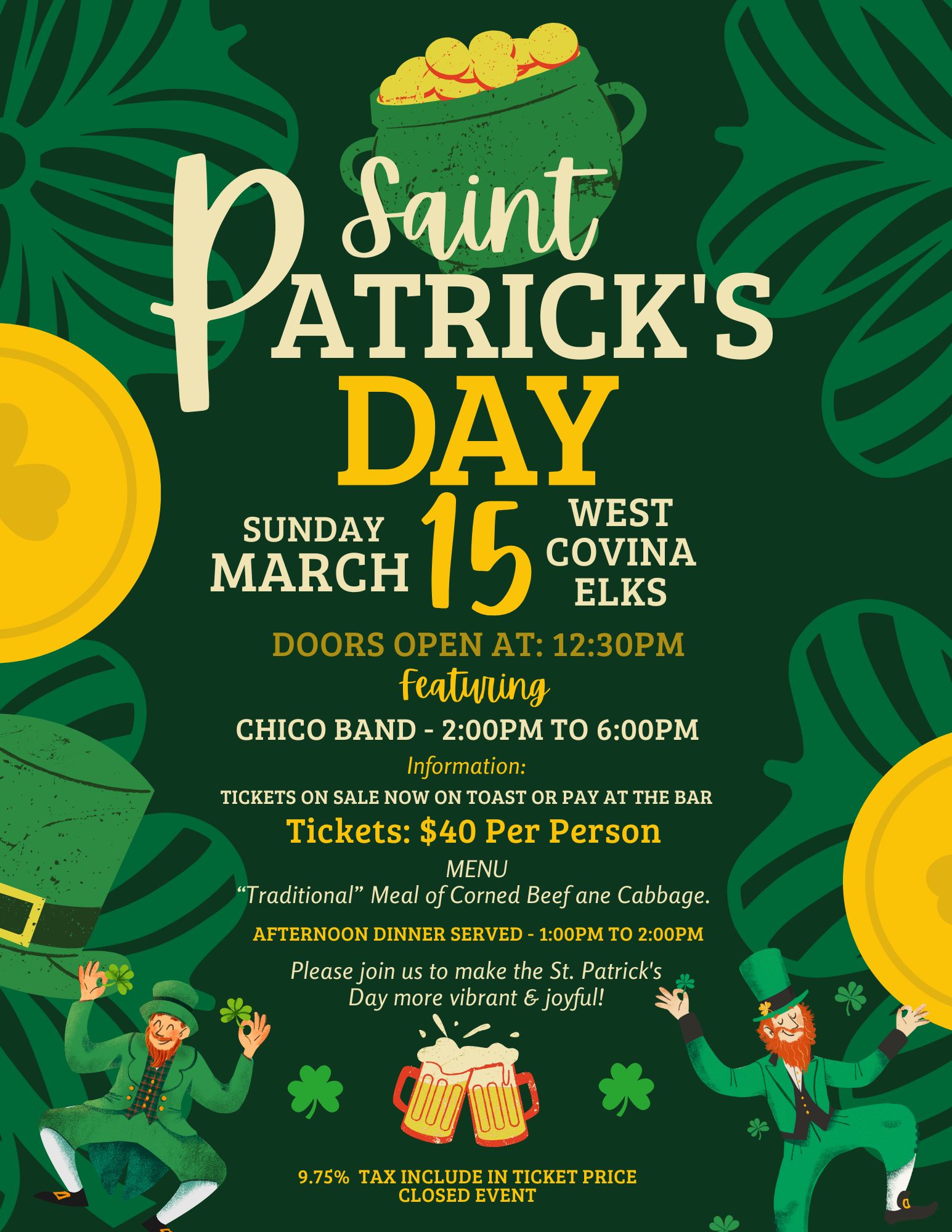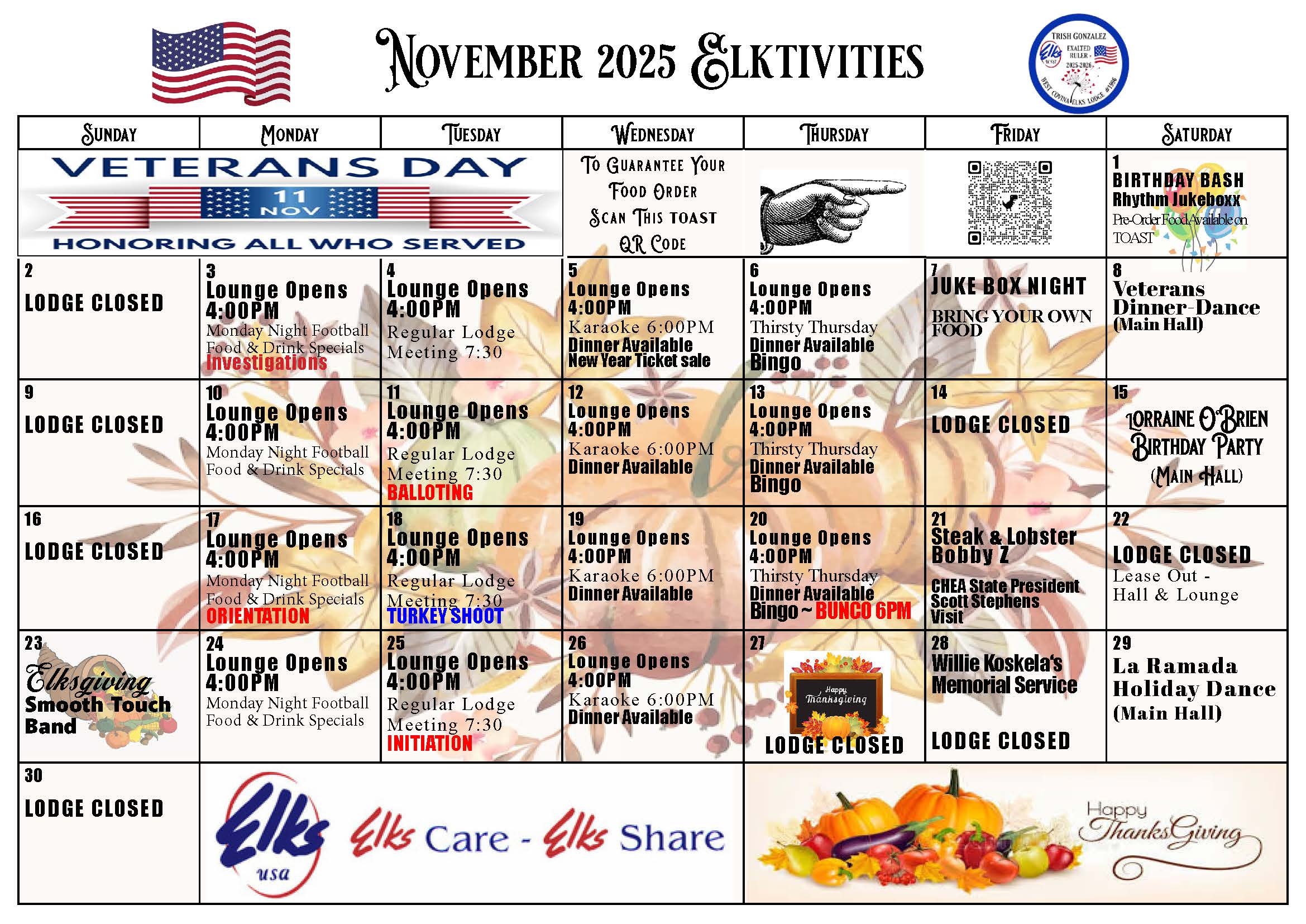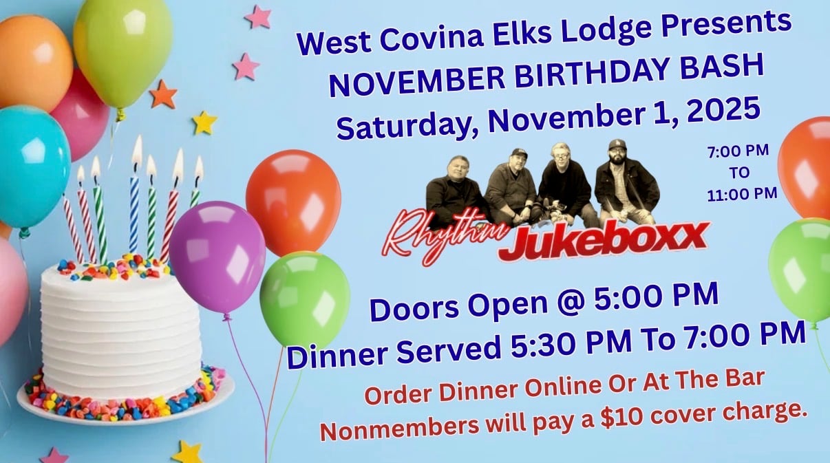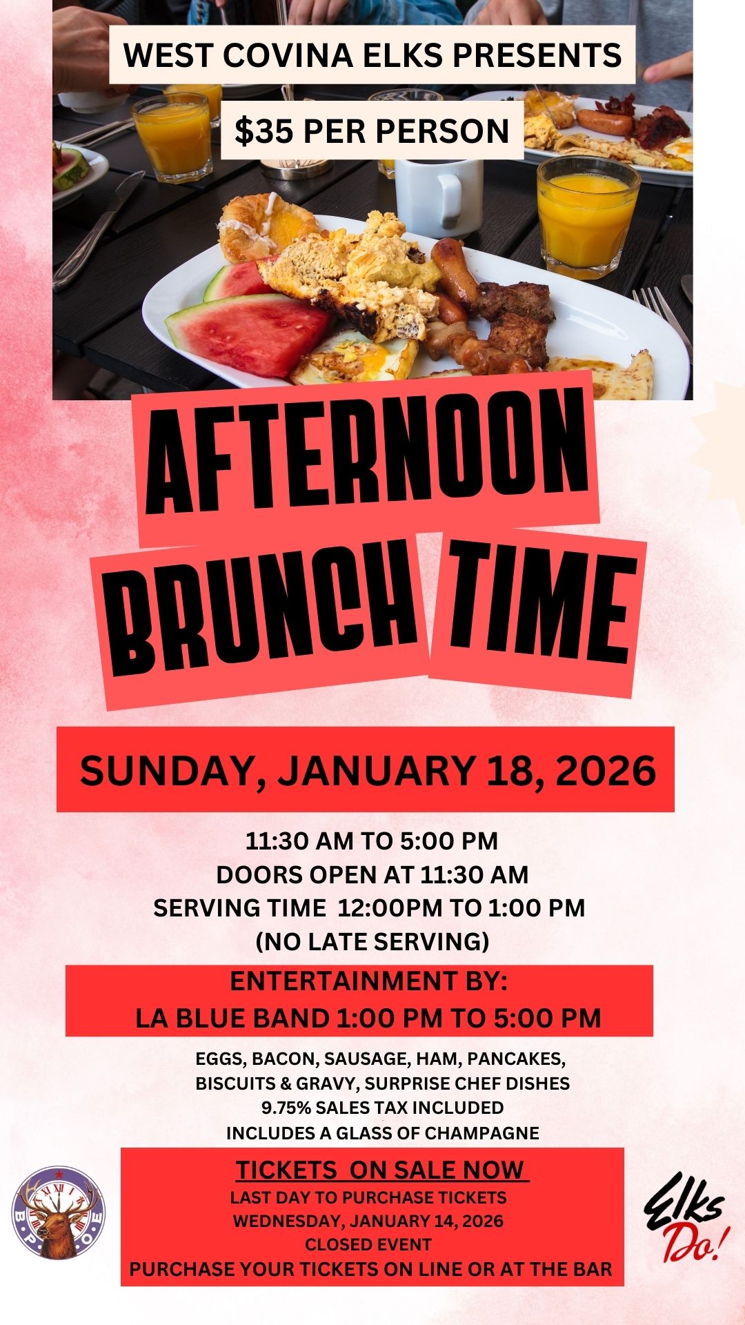 West Covina Elks Members & Associate Members $25 Visiting Elks $30